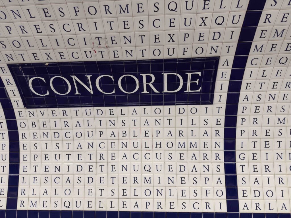 and Concorde Metro station where the Declaration of the Right of Man and of the Citizen is included (Line 12)